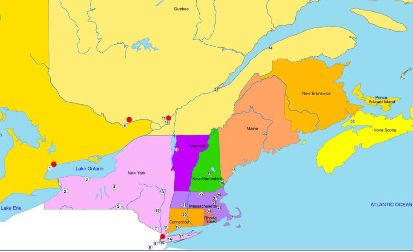 (Represents New York, Connecticut, Massachusetts, Rhode Island, New Hampshire, Maine, Vermont, Central and Eastern Ontario, Quebec, Newfoundland and Labrador, New Brunswick, Nova Scotia, Prince Edward Island, and Bermuda)